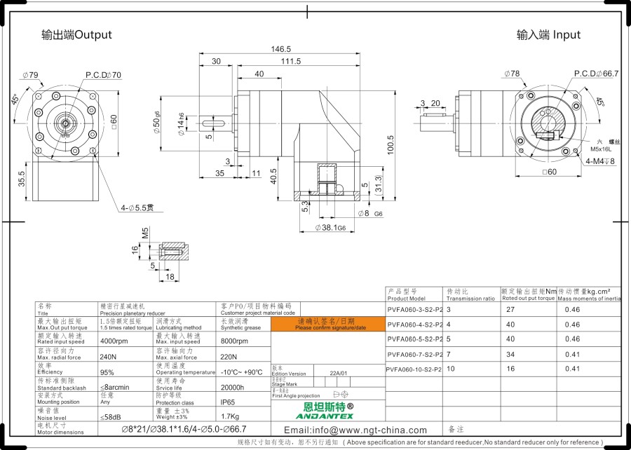 Bolygóműves hajtómű, egy fokozatú, Nema23 / 24-es peremmel, léptetőmotorhoz