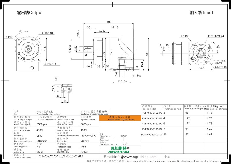 Hajtómű PVFA90 L1 normál bolygóműves, Nema34 léptetőmotorhoz Hajtómű PVFA90 L1 normál bolygóműves, Nema34 léptetőmotorhoz
