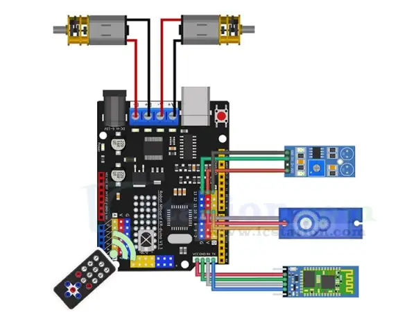 Arduino Uno-hoz, infra távirányítás, duál motorvezérlő pajzs