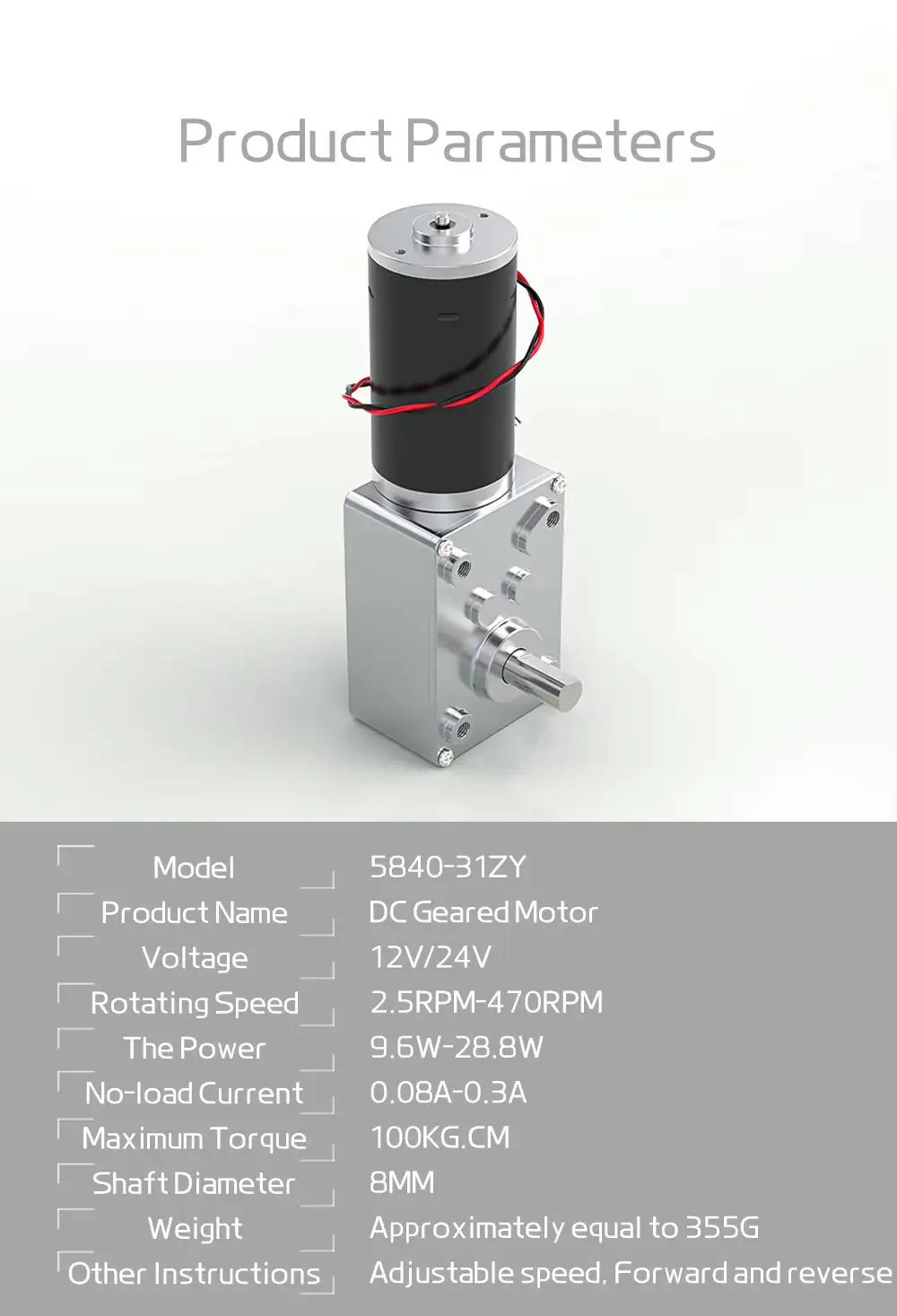 DC hajtóműves, csigakerekes tartó nyomatékmotor