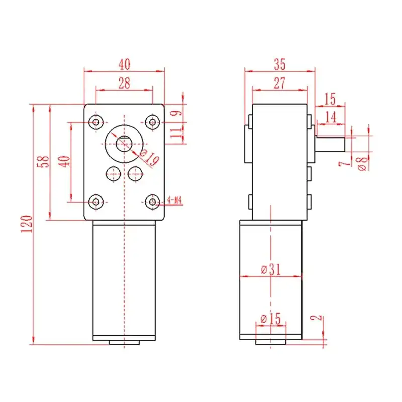 Motor és meghajtó elektronika  »  DC, RPM, nyomaték motor,hajtóműves, áttételes  »  Csigakerekes, nagy áttételű oldalhajtóműves motor  »
