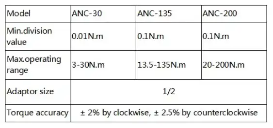 2 Four kinds of torque units can be switched freely: kgf.cm, Nm, lbf.ft, lbf.in.