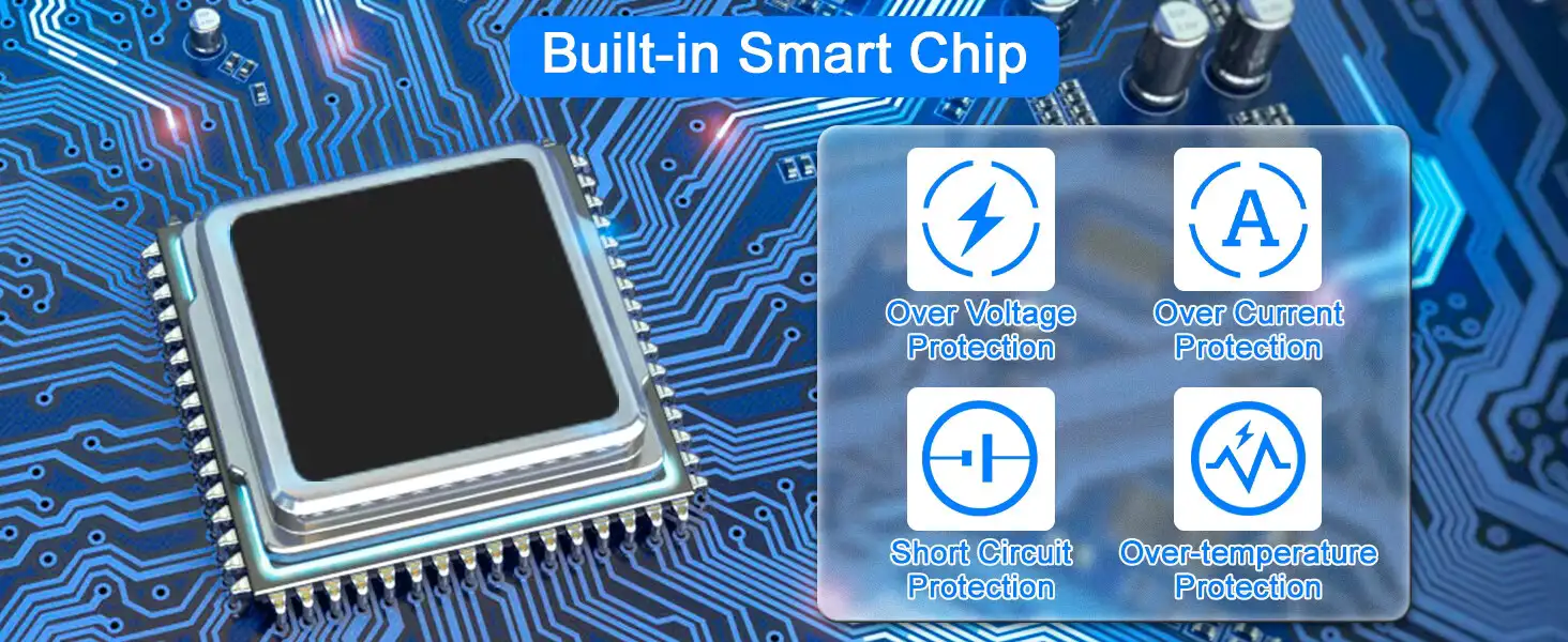 High Conversion Efficiency: Synchronous rectification technology - multiple intelligent protection functions, high conversion efficiency and good stability. Conversion efficiency up to 96%
