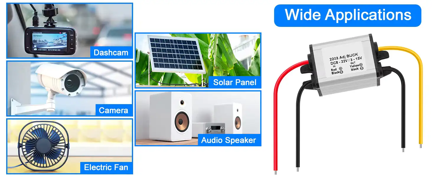 Widely Application: The dc voltage regulator compatible with GPS navigator, MP3, MP4, dashcam, solar panel, LED display, camera, automotive system etc