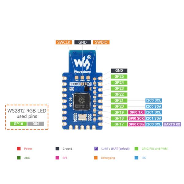 RP2350A fejlesztői panel, onboard USB, 4MB flash, Dual-core & Dual-architecture Microcontroller, 150MHz