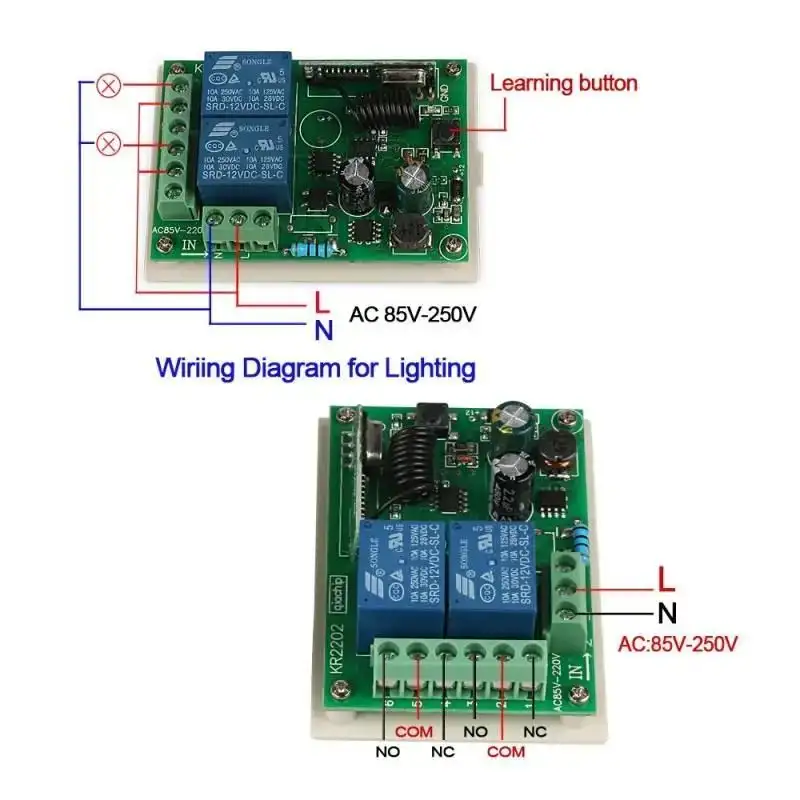 2db 2 csat relés AC vevő modul (a szerelő doboz nem tartozék, a képeken csak illusztráció)