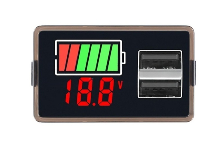 12V-72V Ólomsavas akkumulátor kijelző, 2db USB töltő aljzattal