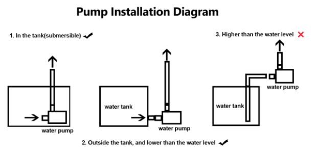2.Prohibit not through the power converter will be connected directly to the 220V power supply pump.