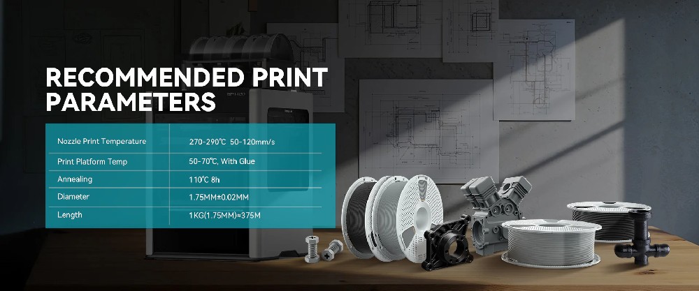 Gépelemek, fogaskerekek, csapágyak, burkolatok, autós/tuning alkatrészek, drón keretek, szerszámfogantyúk, ipari prototípusok, tartós funkcionális darabok, ahol egyszerre kell hőállóság és szilárdság.