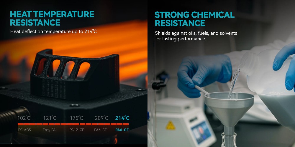 A SUNLU PA6-GF filament egy fejlett, üvegszállal erősített 3D nyomtató anyag (poliamid 12 + üvegszál), amely kiemelkedő teljesítményt nyújt műszaki és ipari alkalmazásokhoz.