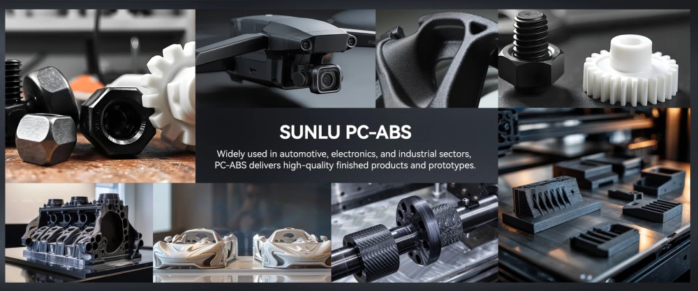 A PC-ABS kompozit filament különösen alkalmas funkcionális prototípusok, ipari alkatrészek, elektronikai burkolatok és autóipari komponensek gyártására. A nyomtatott tárgyak erősek, ütésállók és magas hőmérsékleten is stabilak maradnak.