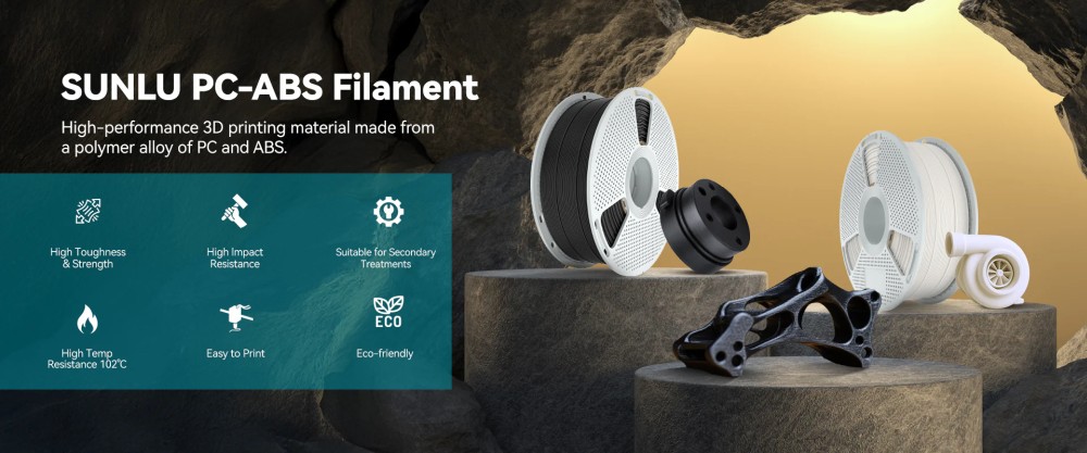 A SUNLU PC-ABS filament egy nagy teljesítményű műszaki filament, amely a polikarbonát (PC) hőállóságát és az ABS ütésállóságát ötvözi. Ez az anyag ideális olyan 3D nyomtatott alkatrészekhez, amelyeknek nagy mechanikai szilárdsággal, méretstabilitással és hőállósággal kell rendelkezniük.