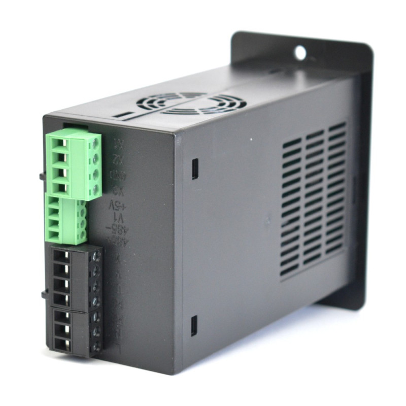 A készülék 1 fázisú 200–240V tápellátásról működik, és 750 W teljesítményű motorok vezérlésére alkalmas. A beépített fordulatszám-potenciométer, az analóg bemenet, valamint az RS-485 kommunikáció lehetővé teszi a rugalmas vezérlést akár vezérlőpanelről, külső jelről vagy ipari kommunikáción keresztül. Angol nyelvű leírás