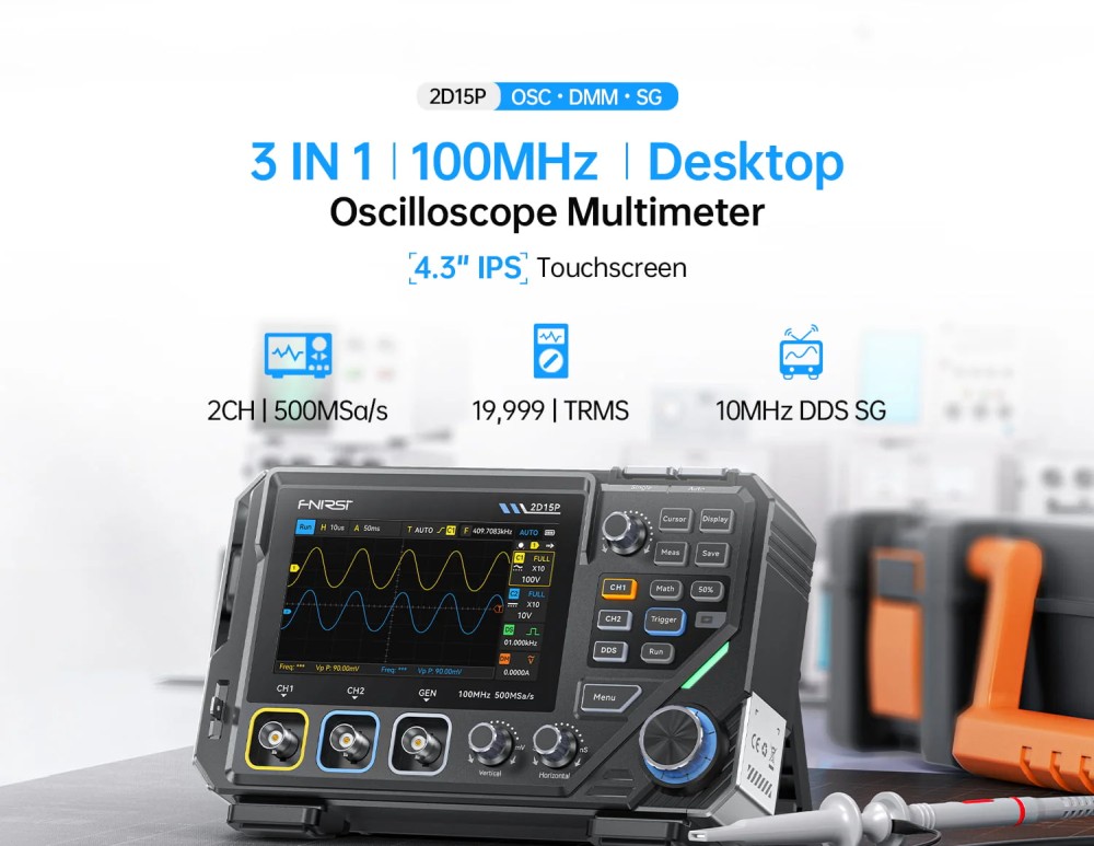 A FNIRSI 2D15P egy kompakt, hordozható mérőműszer, amely egyetlen készülékben egyesíti a kétcsatornás digitális oszcilloszkópot, egy True RMS multimétert és egy DDS jelgenerátort. Ideális választás elektronikai fejlesztőknek, szerviztechnikusi munkához, műhelybe vagy terepi hibakereséshez.