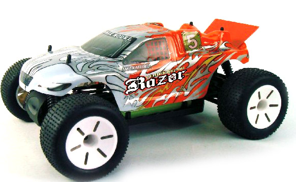 A Razor 1:10-es méretű RC autó fém olajos lengéscsillapítóval jelent meg. A meghajtást 540-es motor biztosítja. A 4 kerék hajtás éles kanyarokban is jó manőverezést tesz lehetővé. Erős anyagból készült, erős lökhárítókkal, amikkel komolyabb ütközéseknek is ellenáll. Továbbá a felfüggesztés állítható is. Az autóval akár 60km/h sebesség is elérhető.