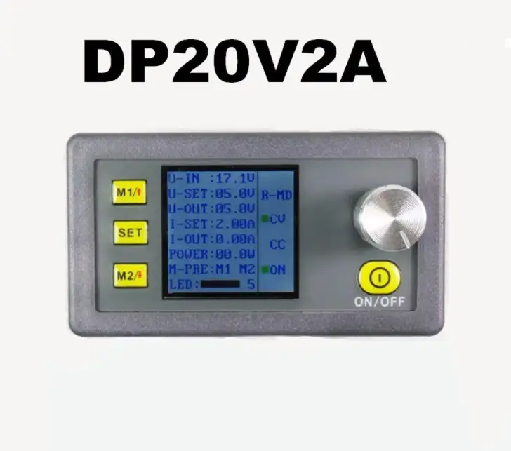 The constant voltage and constant current programmable control power supply module is cabinet and delicate, and it put the collection of analog integration and digital control functions in one. Its adjustable output voltage range is 0-20.0V, step by 0.1V. Its adjustable output current range is 0-2.00A, step by 0.01A. Boot voltages can be stored freely and the model has two groups of quick storage voltage. Compared with the traditional analog power supply, it is more convenient to quickly extract the voltage or current required. LCD display on the model has the function digital voltmeter and ammeter. You can view the preset voltage, input voltage, output voltage, the preset current, output current, output power and LCD brightness.