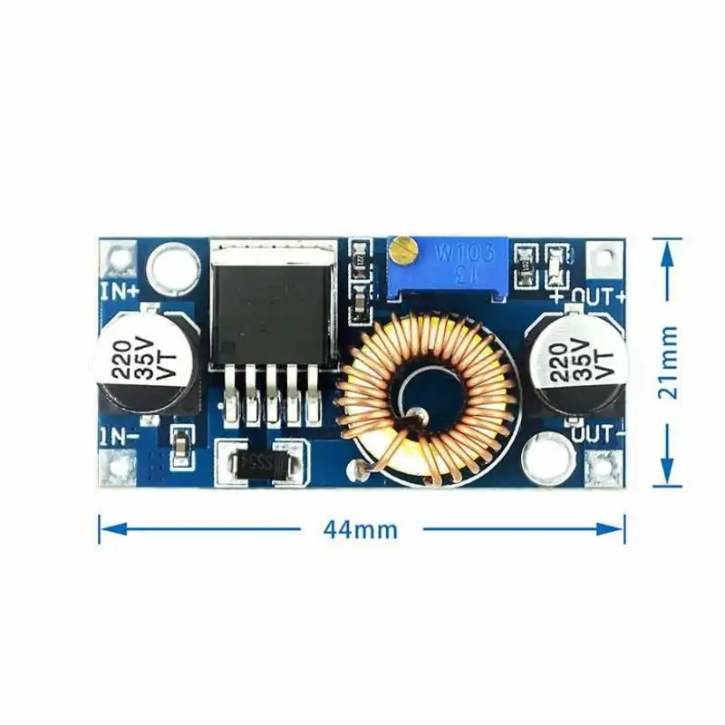 Megjegyzés: A step-down topológiás modul csak lefele konvertál, a kimeneti feszültség mindig alacsonyabb lesz.