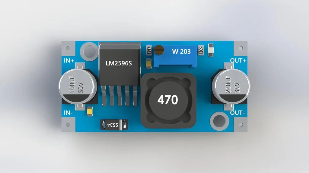 LM2596 IC alapú, le konvertáló, step-down topológiával rendelkező dc-dc átalakító, konverter, le-konvertáló.