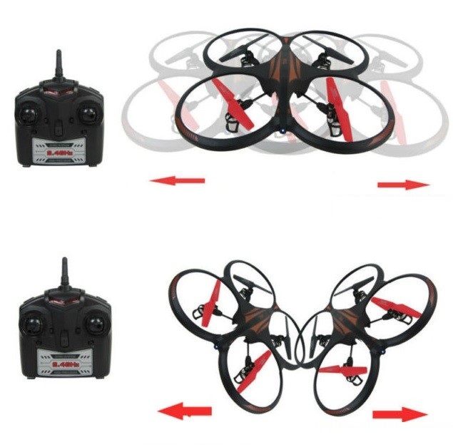 Minden irányban mozogni képes 4 csatornás vezérléssel: fel/le emelkedés/süllyedés gázkarral, előre/hátra dőlés és haladás, jobbra/balra dőlés és haladás, jobbra/balra forgás függőleges tengely körül.