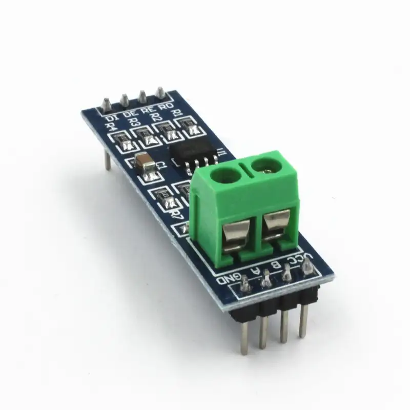 - Max485 IC-vel (On-board MAX485 chip, A low power RS-485 communication, slew-rate limited transceiver)