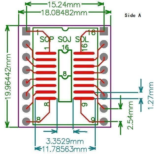 Funcation Side A:SOP16(SOL16/SOIC16)SMD IC to DIP16 (Narrow/Wide pitch compatiable)