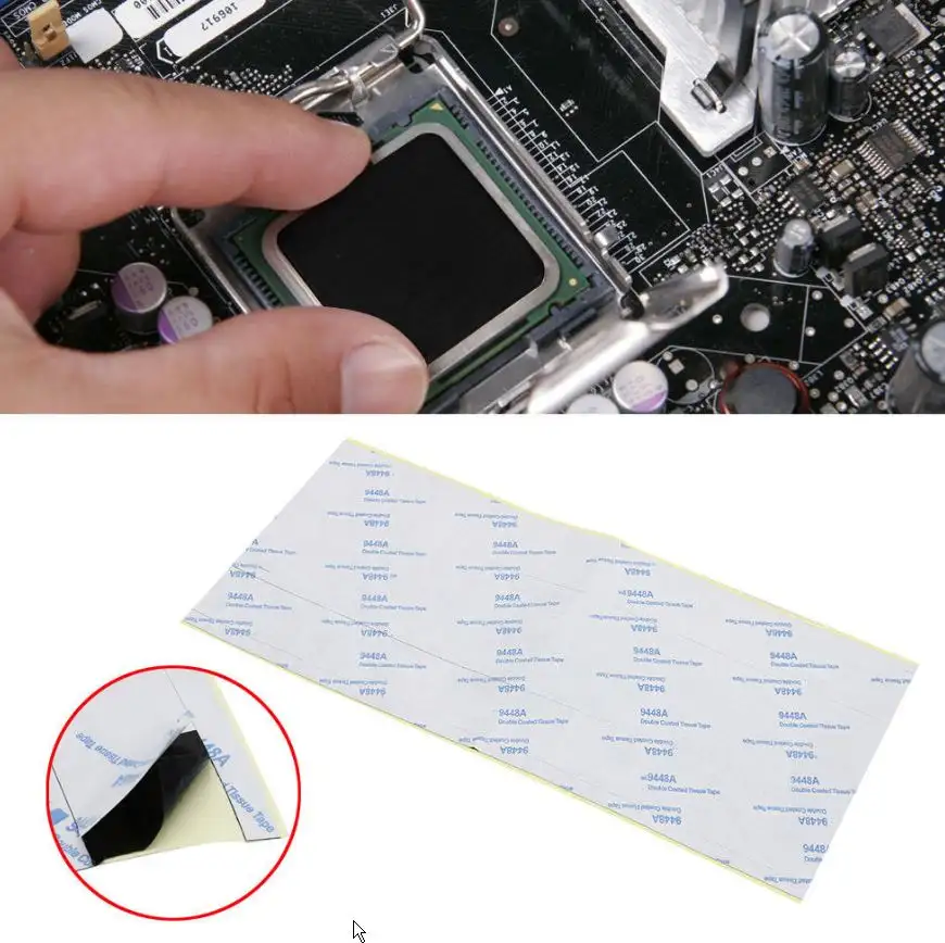 25 x 25mm Négyzet alakú kétoldalas öntapadó 3M hővezető lapka hűtőbordához.