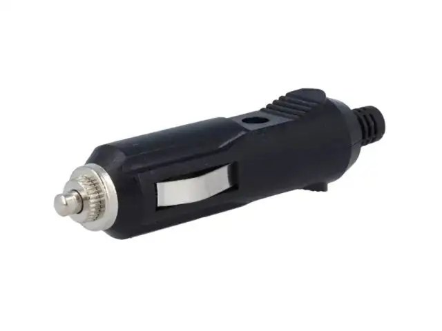 Szivargyújtó csatlakozó apa, műanyag lengő, biztosítékkal és LED-del