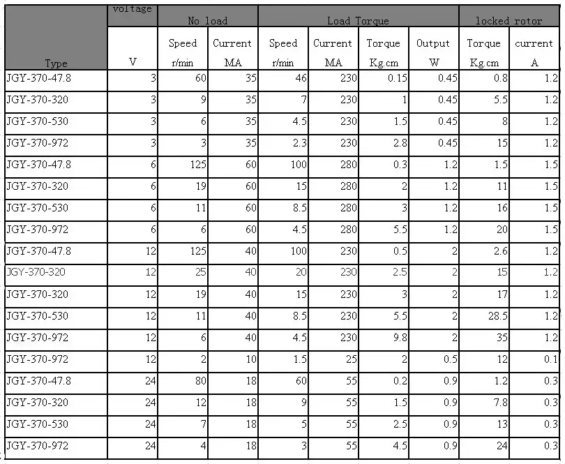 A táblázat alapján egyéb hajtóműves, nyomaték motorok, különböző áttételek, fordulatok, szervók, léptető motorok is rendelhetőek