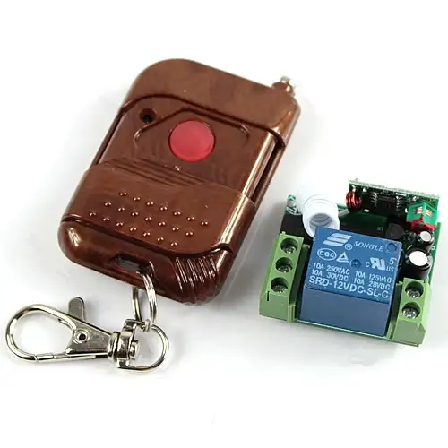 Rádiós univerzális modul: falakon és ajtókon át, biztonságos átvitel kódoltan, (encoder és decoder a távirányítóban és vevő modulban)