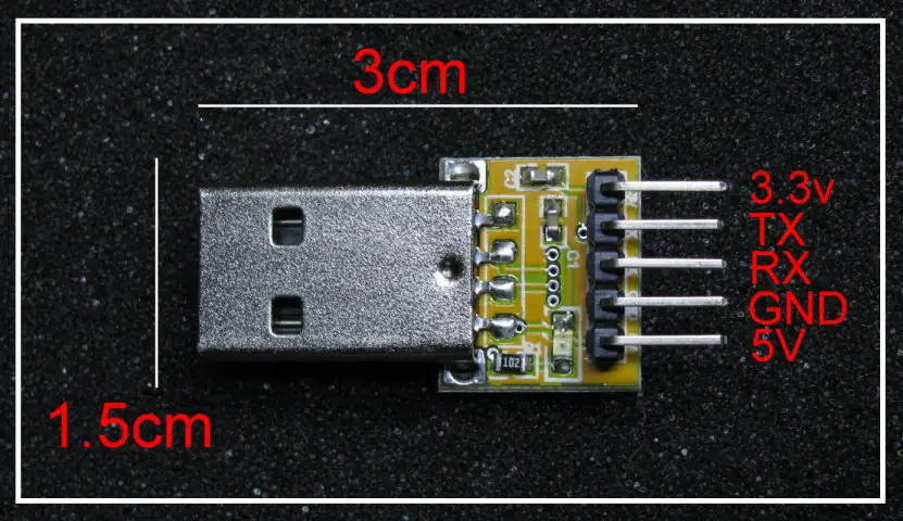 Soros port, 5V/3.3V logikai jelszint, mérőkábelek, tápbemenet, egyszerre 3.3 és 5V